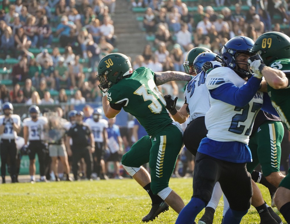 Le Vert & Or était de retour au stade extérieur de l’UdeS pour son 3e match à domicile ce samedi. Le soleil et le beau temps étaient au rendez-vous alors que la troupe de Mathieu Lecompte affrontait les chefs de file au classement général québécois du football universitaire; les Carabins de l’Université de Montréal. Il était question du deuxième affrontement en autant de semaines entre ces deux équipes.