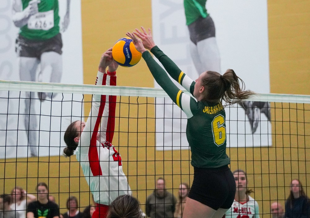 - Étudiante en génie mécanique, la libéro Ariane Fortin-Haines a été une athlète clé de cette victoire contre les Martlets grâce à sa stabilité en réception de service et sa combativité.