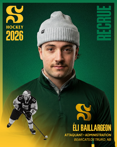 Le Vert & Or de l’Université de Sherbrooke est fier d’annoncer l’engagement de l’attaquant Éli Baillargeon, première recrue officielle de la relance de son programme de hockey.