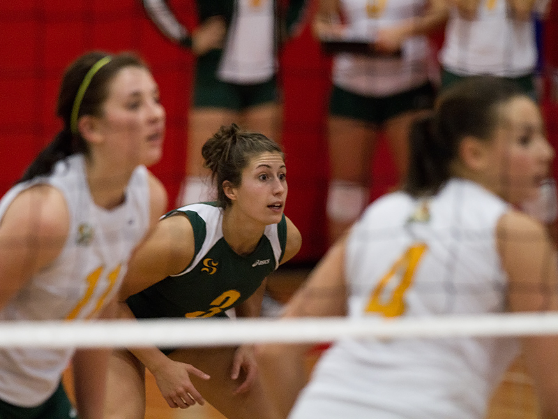 Après avoir remporté haut la main le premier set 25-11, les protégées de Denis Fontaine étaient en voie de servir la même médecine aux visiteuses au deuxième, mais quelques appels controversés des officiels ont fait tourner le vent de côté. Les Martlets ont finalement enlevé l'engagement au bris d'égalité, 27-25.