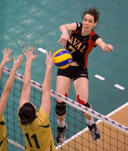 Samedi, lors du match pour la 5e place, les Sherbrookoises ont remporté le premier set par la marque de 25 à 22, inspirées par une foule locale dynamique. Les protégées de Denis Fontaine ont ensuite poursuivi leur bon travail au deuxième set, prenant les devants 21 à 10 pour l’emporter finalement 25 à 12. Leurs adversaires, en l'occurrence le Rouge et Or de l'Université Laval, n’ont pas semblé abattues en début de troisième set, prenant et gardant l’avance jusqu’au milieu de cette manche. Mais le Vert & Or a trouvé le moyen de revenir de l’arrière et conclure le set et le match par la marque de 25 à 19.