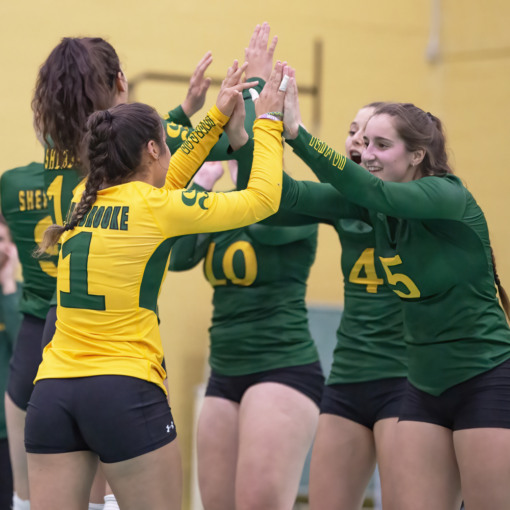 L’équipe féminine de volleyball Vert & Or maintient sa forte cadence depuis le début de sa saison 2021-2022. Vendredi soir à domicile face aux Martlets de McGill et dimanche après-midi à Ottawa contre les Gee-Gees de l’endroit, les volleyeuses de l’UdeS ont effet été de nouveau intraitables face à leurs adversaires et ont engrangé deux autres victoires importantes.